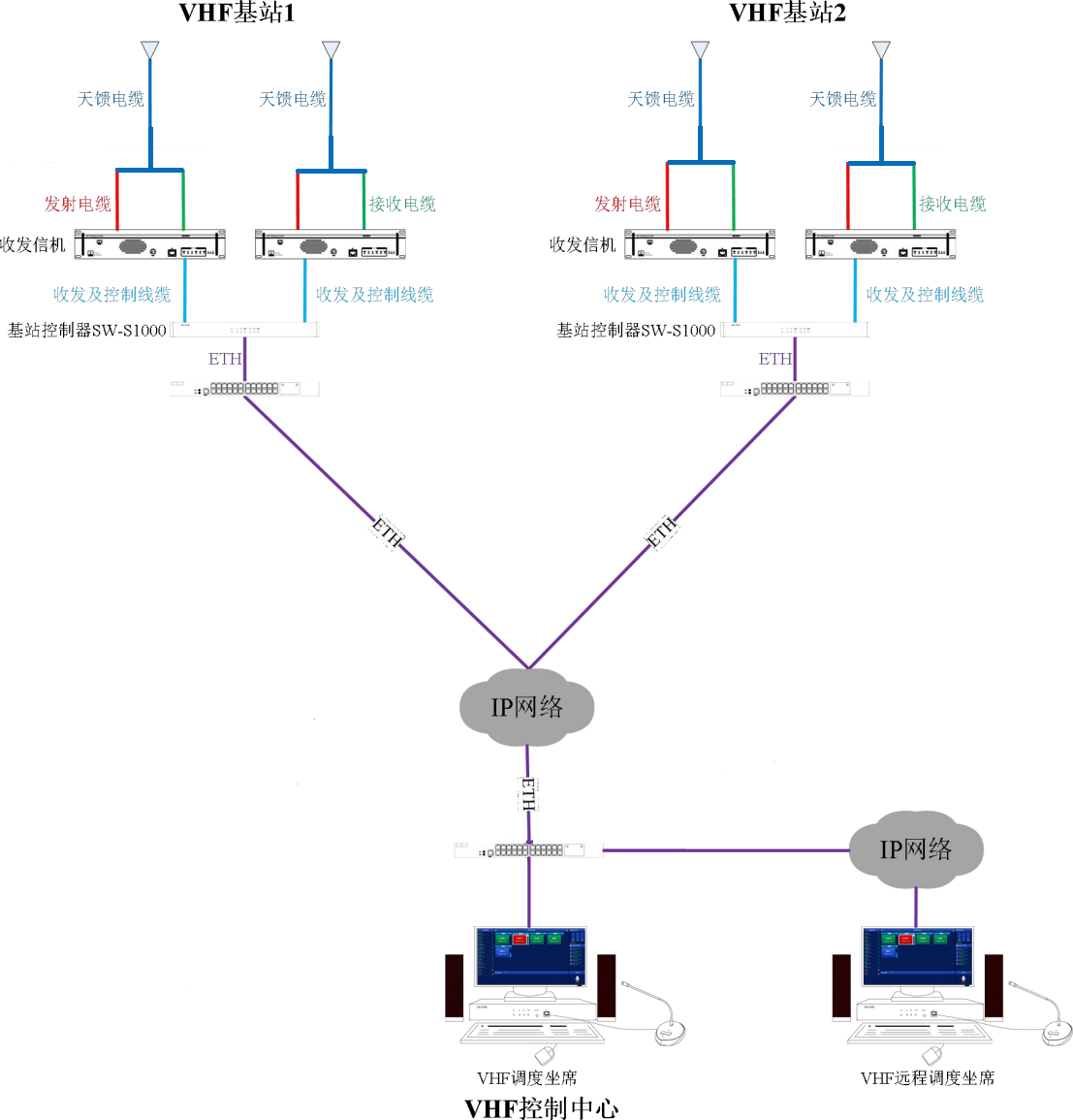 实现VHF集群调度,支持广播、录音、回放、调度等功能。