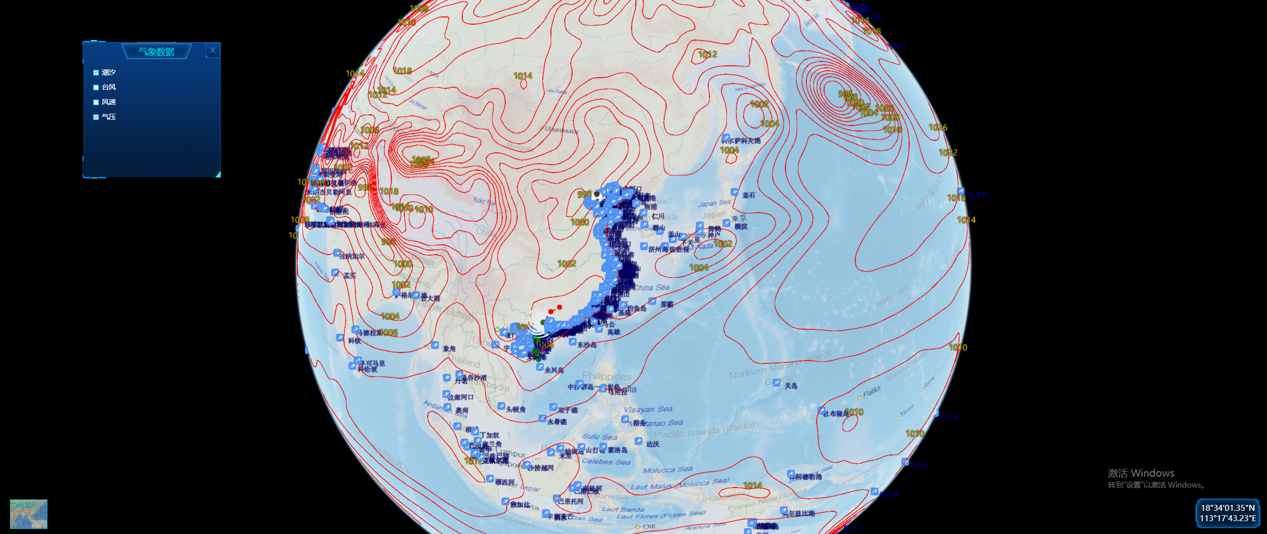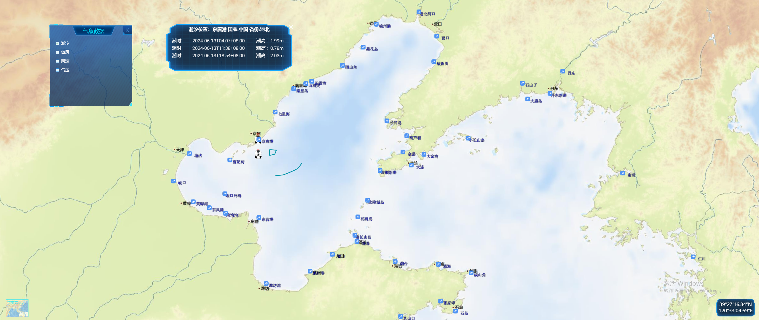 台风、海浪、温度、气压、风速、风向、阵风、潮汐等。
